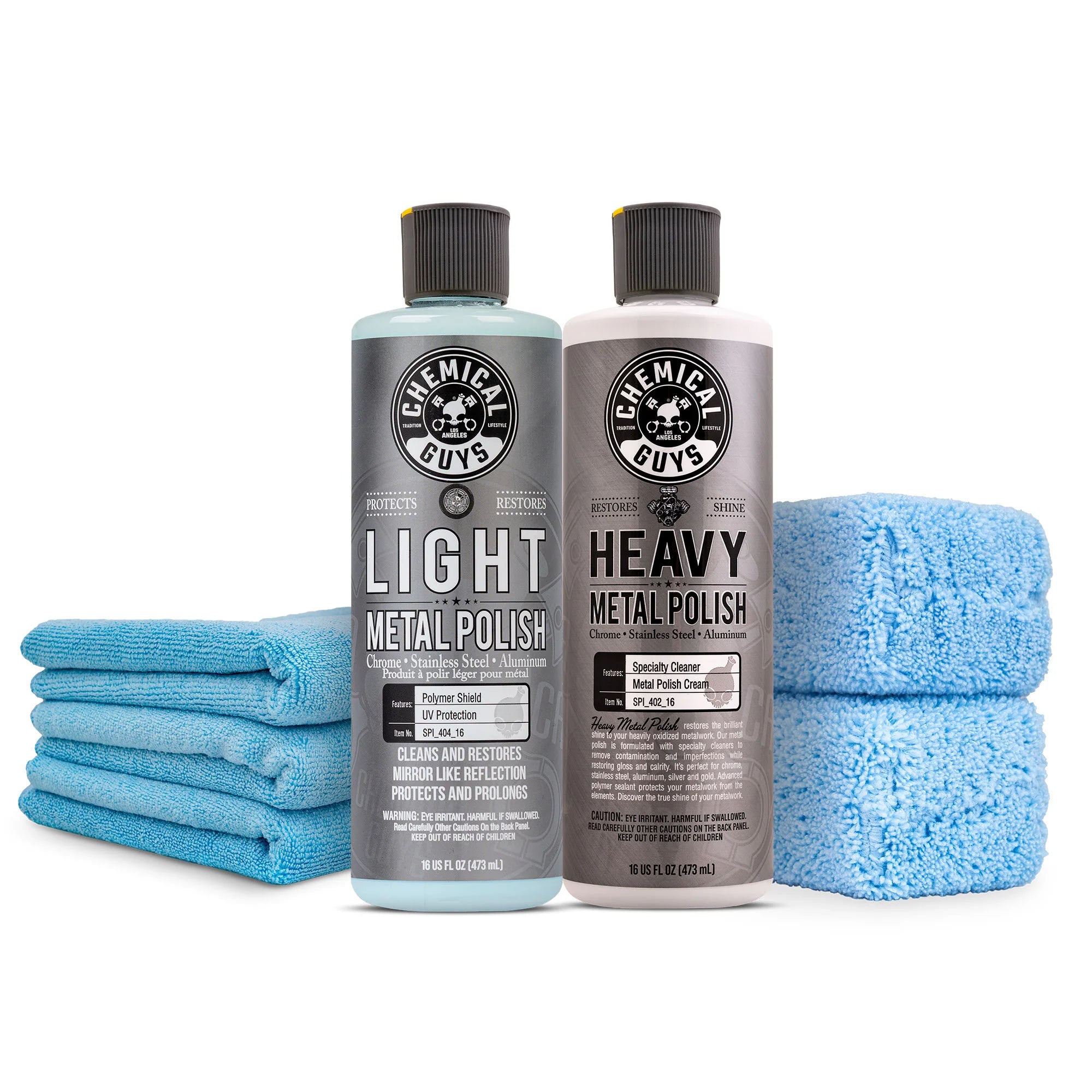 From light touch-ups to full-on metal restoration, this kit has everything you need to restore, protect, and showcase your shine. Use Heavy Metal Polish to blast through severe oxidation and revive neglected chrome, aluminum, or stainless steel. Follow up with Light Metal Polish to fine-tune and maintain that mirror finish. Both formulas seal and protect your metal with durable polymers. Paired with soft, scratch-free Workhorse Microfiber Towels and Premium Applicators, this kit is your one-stop shop for flawless metal detailing. Perfect for wheels, trim, exhaust tips, and more—if it shines, this kit makes it gleam.